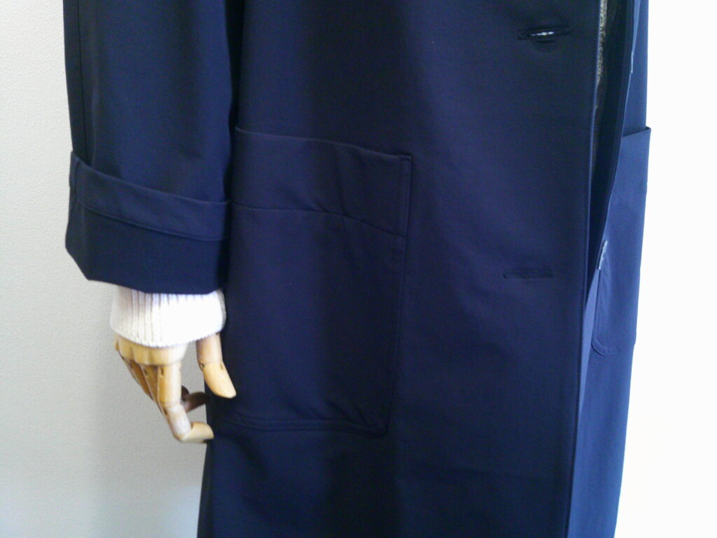 2wayストレッチで撥水性に富んだ生地を使用した裏無しのナイロンコートです。レインコートにもスプリングコートにもなります。お天気の定まらない春は特に出番がありそうで、みぞれ交じりの寒さを感じる日は薄手のダウンコートやベストと重ね着されると暖かさもあり撥水性のある生地も活躍してくれるでしょう。風の強い春は襟を立てて風をよけてもくれます。冬から春にかけてお天気の定まらない時期に便利なコートと思います。