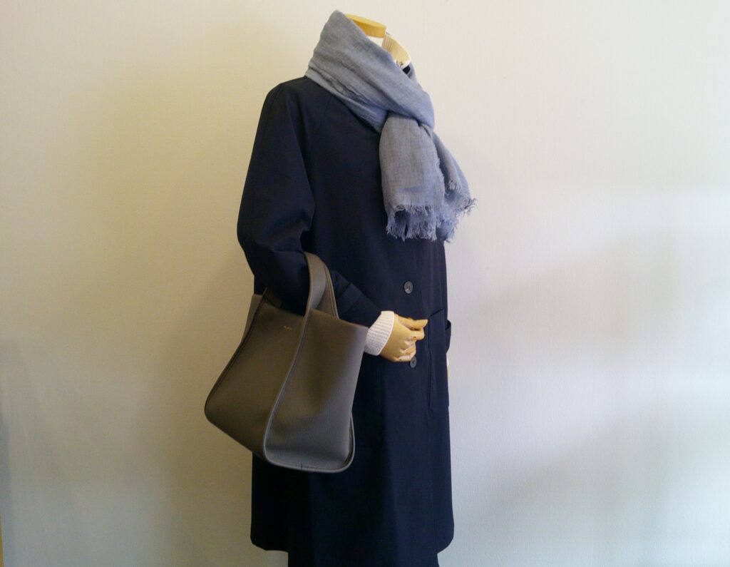 裏衿の返りが甘いかなと思ったのですがそれが襟を立たせたときにしっかりと立ってくれます。その上からストールを巻いてもよく、お天気の変わりやすい春にはありがたい。シンプルなデザインでお色も紺と黒のみ。長く楽しめそうです。