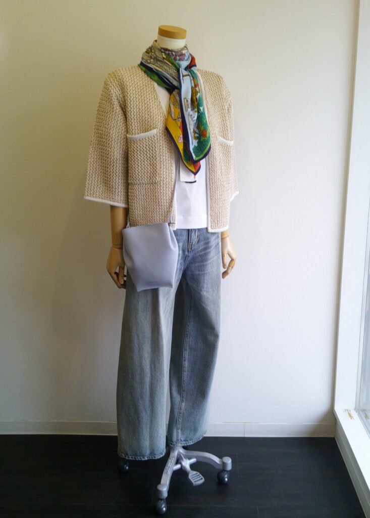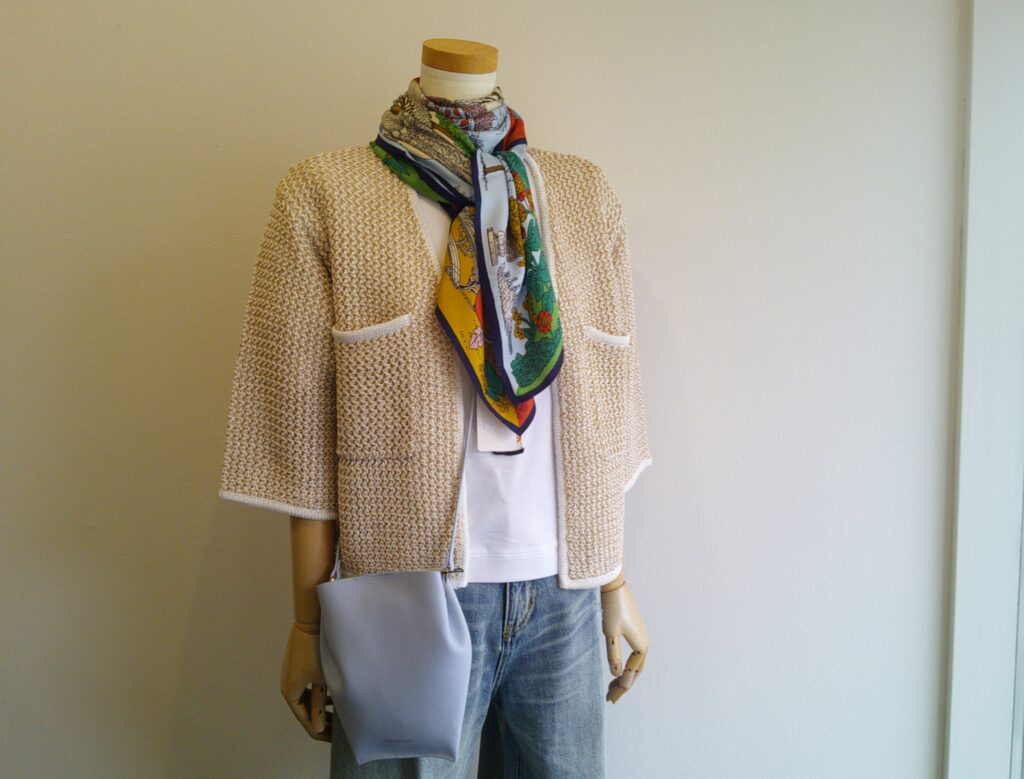 今日のウインドウ 桜が咲くまでまだかかりそうです。なかなか暖かくなりきらなくて期待だけが先走りです。ウインドウくらいは軽く明るくと思ってADAWASUのメッシュのカーディガンをカジュアルに合わせてみました。
