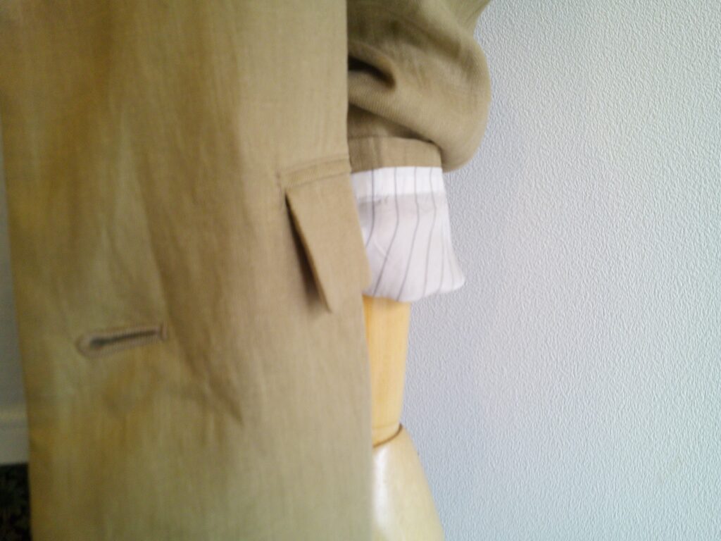 トロピカルウールのジャケットと同じ形です。脇にスリットが入っています。パンツのポケットに手を入れる仕草も格好良いのです。
