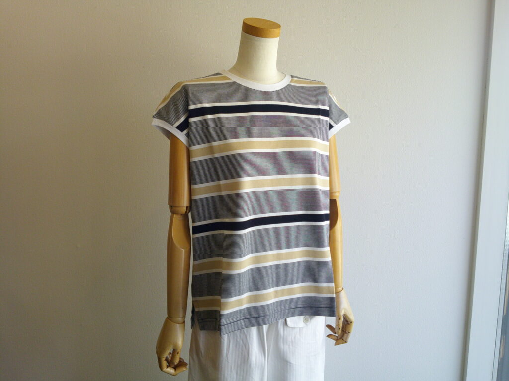 tsuki.sのこの夏のボーダーです。tsuki.sのボーダーは大人っぽくて、着心地も本当に気持ち良い。そしてシルエットも品があってきれいなのです。今年も作ってくださって嬉しい、嬉しい。